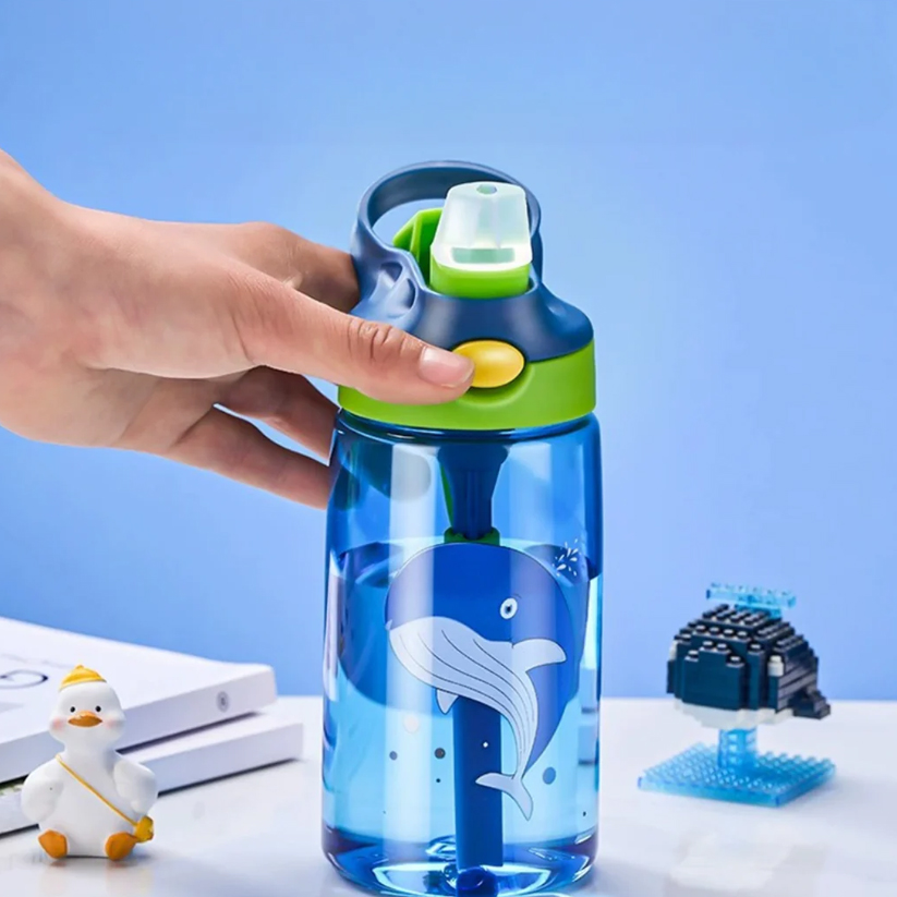 Vibrant Aqua Theme: This kids water bottle features a playful and eye-catching aqua-themed design that appeals to children of all ages, making hydration fun and exciting.